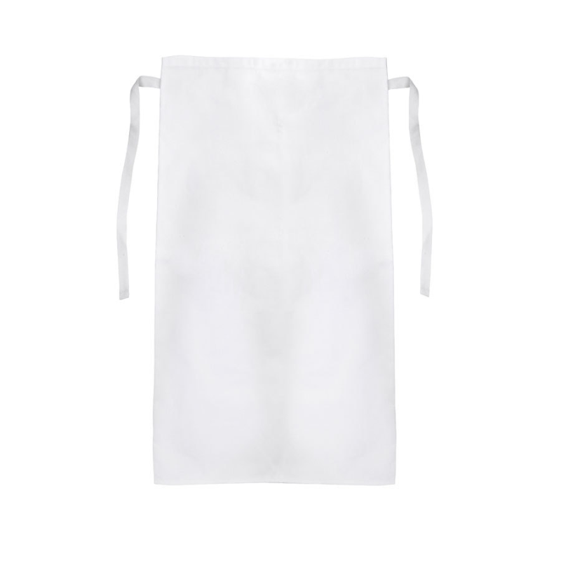 Bar Apron White. o Hardwearing polycotton fabric o Extra long 100cm wrap around ties o Twin front pockets .