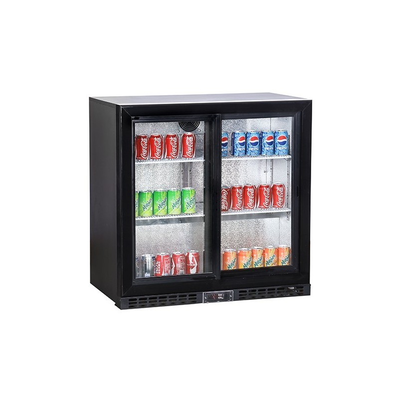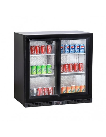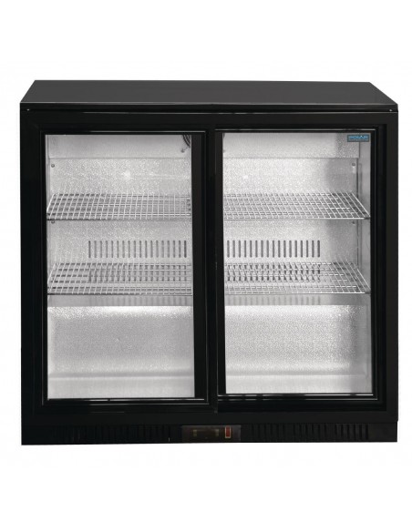 Polar GL003 Double Sliding Door Back Bar Cooler in Black with LED - FREE 24hr Delivery & Unpack