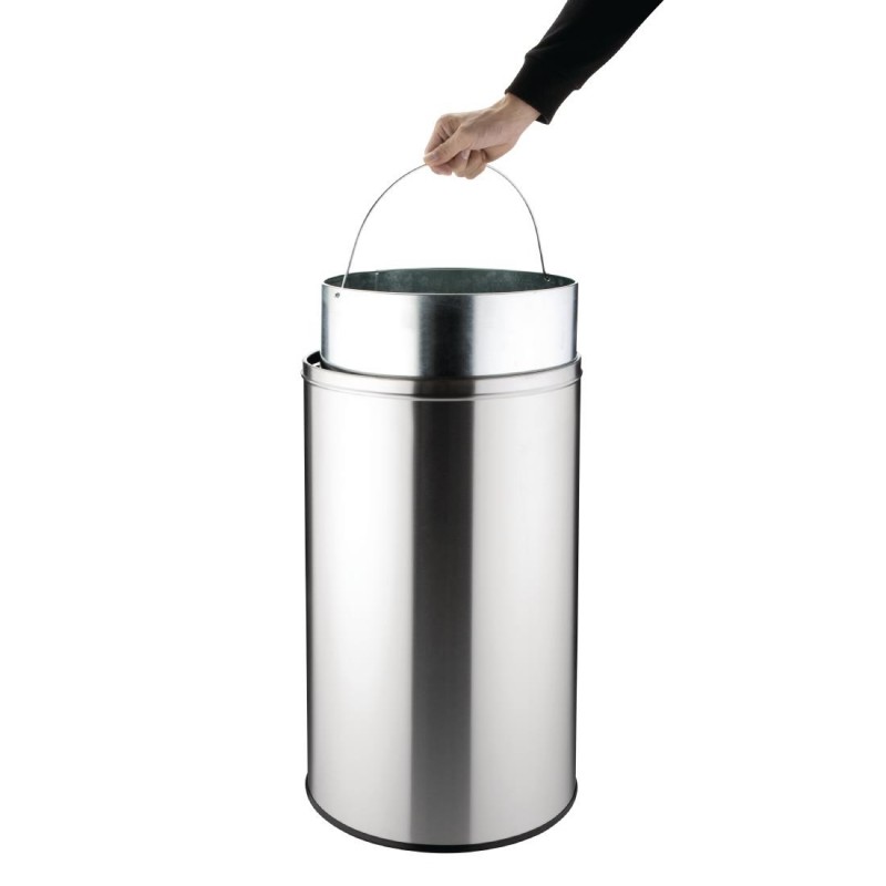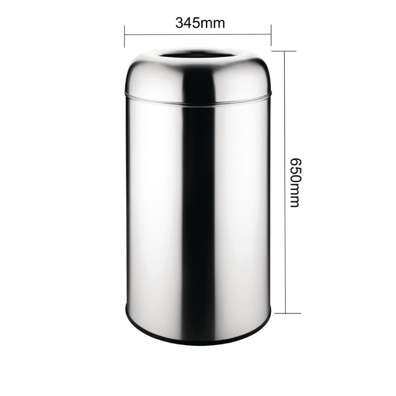 Bolero Stainless Steel Open Lid Bullet Bin Silver 40Ltr