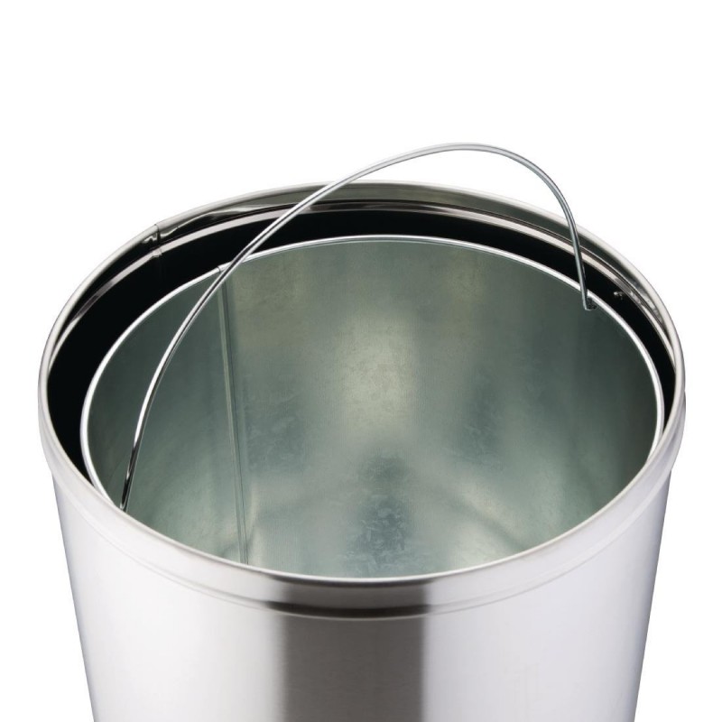This stainless steel bin with open lid is ideal for use in front of house areas such as coffee shops. Bolero have designed the bin with a polypropylene foot which improves stability and offers a user friendly functionality which is hygienic. The bin is also easy to clean thanks to the stainless steel matt finish.