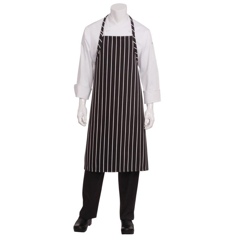 Chef Works Premium Woven Bib Apron Black and White Stripe