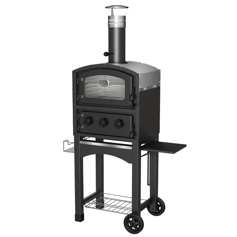 Safe stylish and incredibly versatile the Fornetto wood fired oven and smoker in black is the perfect addition to the home garden for entertaining and cooking of delicious baked and smoked food. The attractive cast iron doors and steel construction ensure safe operation whilst still having the appearance of a traditional yet professional appliance. The Fornetto oven is able to use any combustible fuel and is ideal for cooking pizzas roast meat and even desserts. The large 61.2 litre oven cavity is large enough for most events whilst the innovative smoker slide means the Fornetto can be converted into a smoker in an instant. Can also be used as an outdoor heater on those cooler evenings.