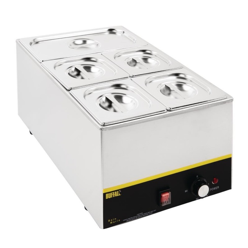 Perfect for many commercial kitchen environments such as schools hospitals hotels and office canteens this set will make the perfect addition allowing you to carry out a range of tasks including cooking reheating blast chilling and presenting. Built from high quality stainless steel ensuring they are incredibly tough and ideal for constant use. This set includes one 1/3 pan and four 1/6 pans with appropriate lids and an adaptor support bar. For use with L371 and L310 Buffalo Bain Maries. Need advice on choosing the right size? Click the 'product size guide' tab for more information.