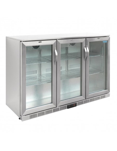 Polar GL009 Triple Hinged Door Back Bar Cooler with LED Lighting. With its attractive design and commercial reliability, the Polar G-Series three door back bar cooler is a superb front of house display fridge to maximise sales of drinks, whether they're in bottles, cans or cartons.