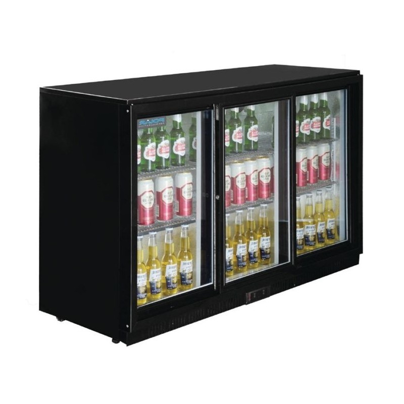 Polar Triple Sliding Door Back Bar Cooler in Black 3 door with LED Lighting GL006 - FREE 24hr Delivery & Unpack