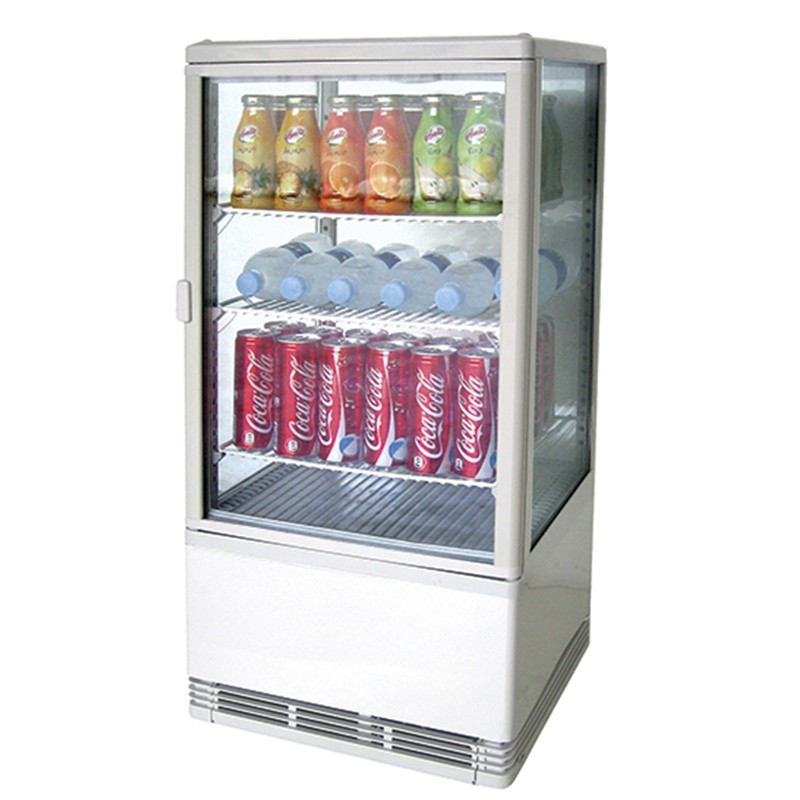upright refrigerated display with 3 shelves, tabletop, 70 litres, 0 °C/+12 °C, white colour