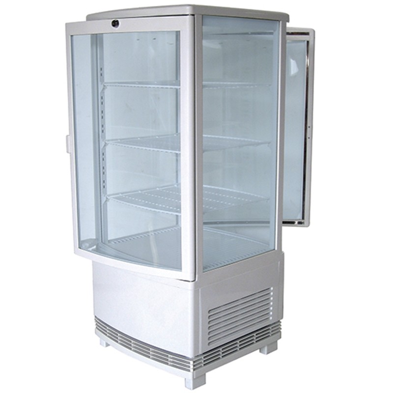 Upright Commercial refrigerated display with 3 shelves, tabletop, 86 litres, 0 °C/+12 °C, white colour Mini refrigerated display 2 doors, 3 shelves cap.86lt