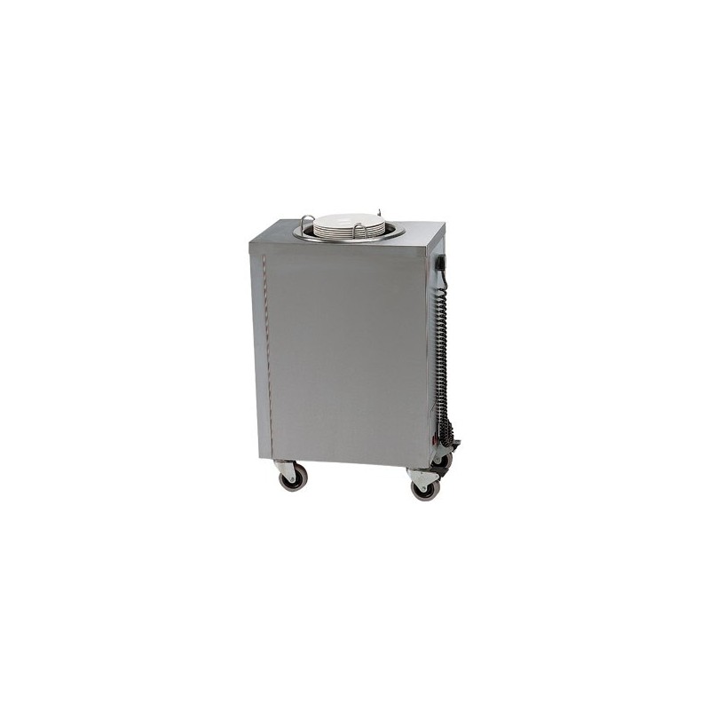 Mobile heated plate dispenser with lid constructed from stainless steel.