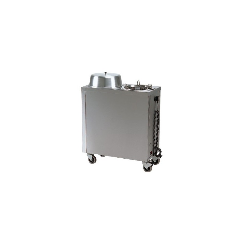 Mobile heated plate dispenser with lid constructed from stainless steel.