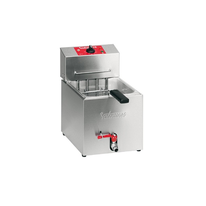 The Valentine TF Range is designed to suit smaller kitchens or where a fryer is required for occasional use. These compact table-top fryers are predominantly designed for use with a 230v power supply, although alternative power options are available on some models (see power ratings on each model). Valentine fryers offer a simple to operate, low maintenance range of frying equipment designed to fit perfectly into any commercial kitchen. The fry pan is pressed from a single sheet of stainless steel and provides a durable, smooth, rounded, easy to clean profile. The 3 main components that make up the TF fryer (base, pan and element head) all come apart for easy and hygienic cleaning. With over 65 years of experience, Valentine Fabrique continue to provide high quality, immensely dependable fryers. The TF7T is fitted with non-slip feet and comes complete with one basket. A lid and mains cable are also included when you purchase your new Valentine fryer.