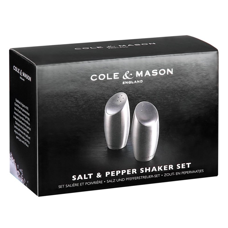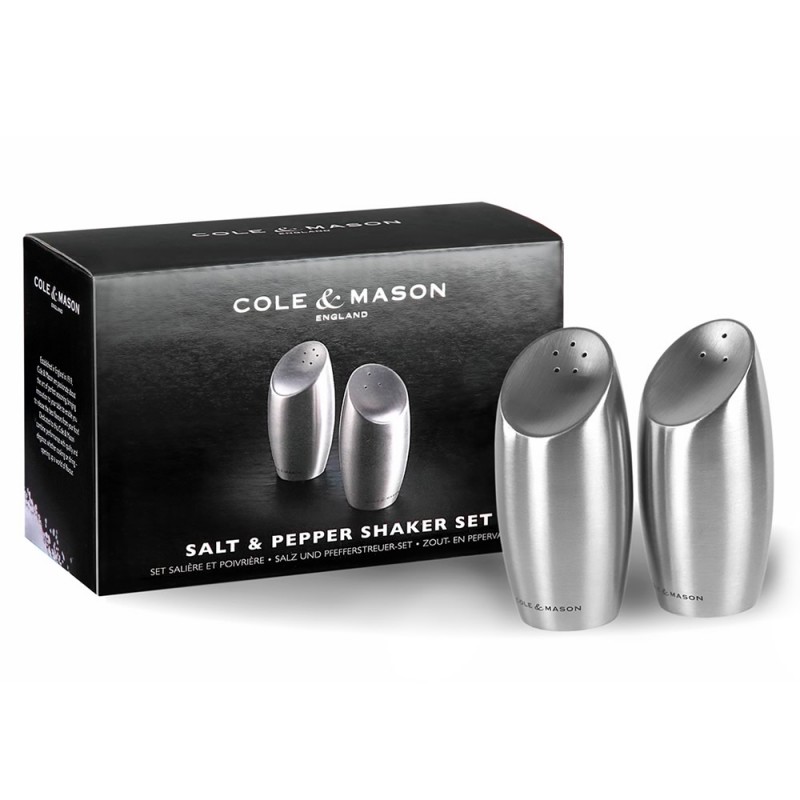 Contemporary and stylish high quality stainless steel salt and pepper shaker set. Sloping top design prevents internal salt and pepper build up clogging the holes. The neat cap on the base allows for easy refilling. Ideal for either table or kitchen use. Today's consumer has an appetite for more adventurous dishes using a range of seasonings. The Cole & Mason range of Salt and Pepper shakers includes a design to suit every taste and are small enough for picnics and outdoor dining. Packaged in a presentation box ideal for gifting.