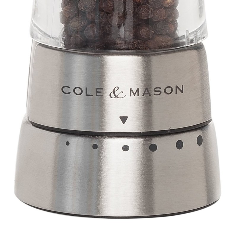 As one of our most well known and best loved Gourmet Precision mills the Derwent pepper mill with its sleek profile in stainless steel and acrylic brings professional seasoning and control to everyday kitchens. Simply twist the stainless steel collar on the Derwent pepper mill to 6 pre-selected settings to achieve fine to coarse grinds during and after cooking; use a coarse grind for steaks a mid setting for pizzas and a fine setting for soups and sauces. Each pepper mill features a push top cap for ease of refill. The Cole & Mason award winning Gourmet Precision mechanism does not crush peppercorns but strips them to consistently release the maximum amount of flavour with each turn. These mills feature a hardened carbon steel mechanism for pepper and diamond sharp ceramic mechanism for salt and come with a lifetime guarantee. To understand more about our mechanisms and which one best suits your seasoning needs . We recommend using high quality peppercorns and coarse rock salt in all our mills.