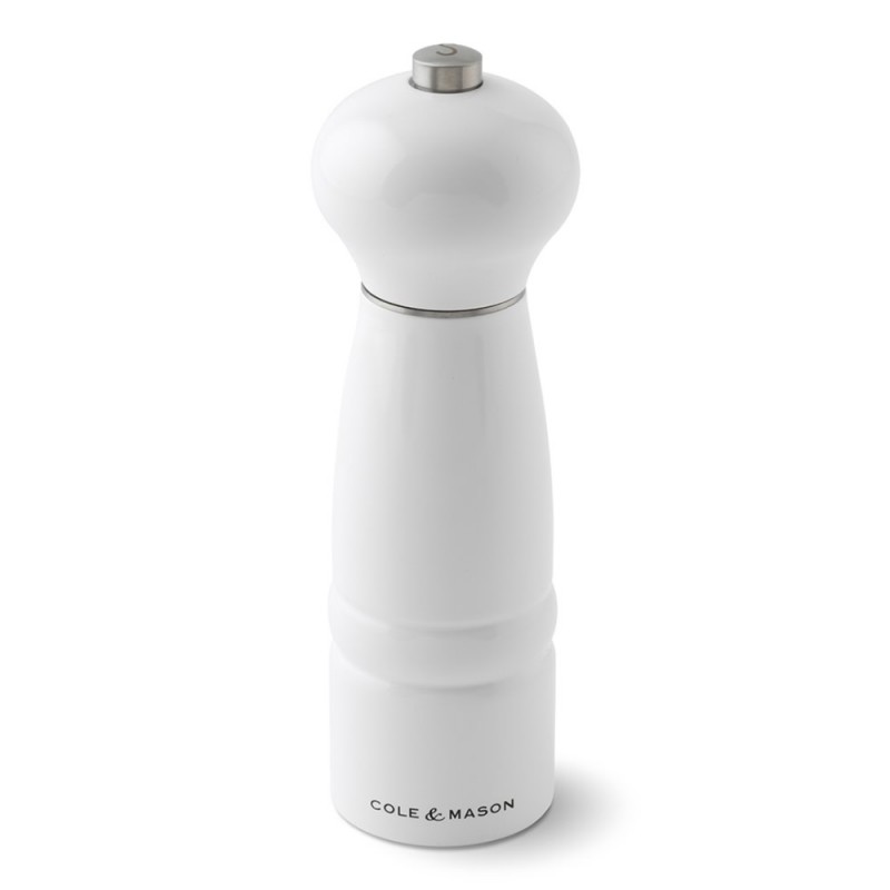 A classic wooden salt mill with a contemporary lacquered high gloss white finish the Glacier White Windsor salt mill is a stunning design. Adjust the grind on each mill from fine to coarse by tightening or loosening the knob on the lid. The Windsor salt mill features a diamond sharp ceramic mechanism designed specifically for salt and comes with a lifetime guarantee. To learn more about our mechanisms and which one best suits your seasoning needs . We recommend using high quality peppercorns and coarse rock salt in all our mills.