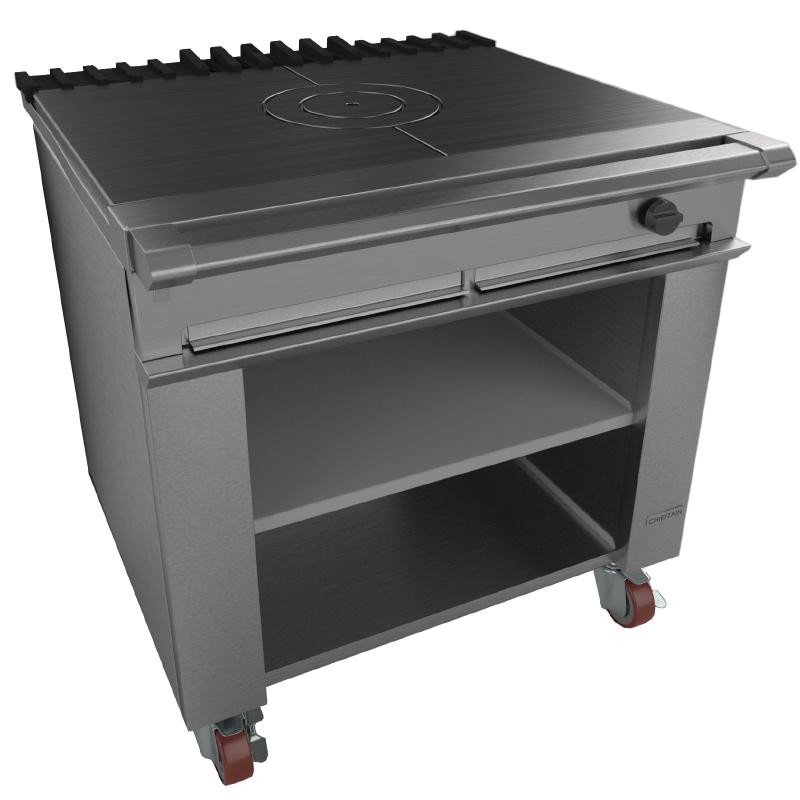Designed for the busiest and most demanding of commercial kitchens the LPG Falcon Chieftain solid top boiling range provides all the power and performance you'd expect from a top of the range commercial gas solid top. The large bullseye offers precise zonal heat and multi-pan cooking allowing both gentle simmer and full boil using the same heat setting. The solid top is strong and robust enough for most standard pots and pans whilst the handy mobile stand also doubles as versatile easy to clean storage. Temperature is precisely regulated using the robust dial control whilst up to 9.6kW of power ensures a rapid heat up and less down time.