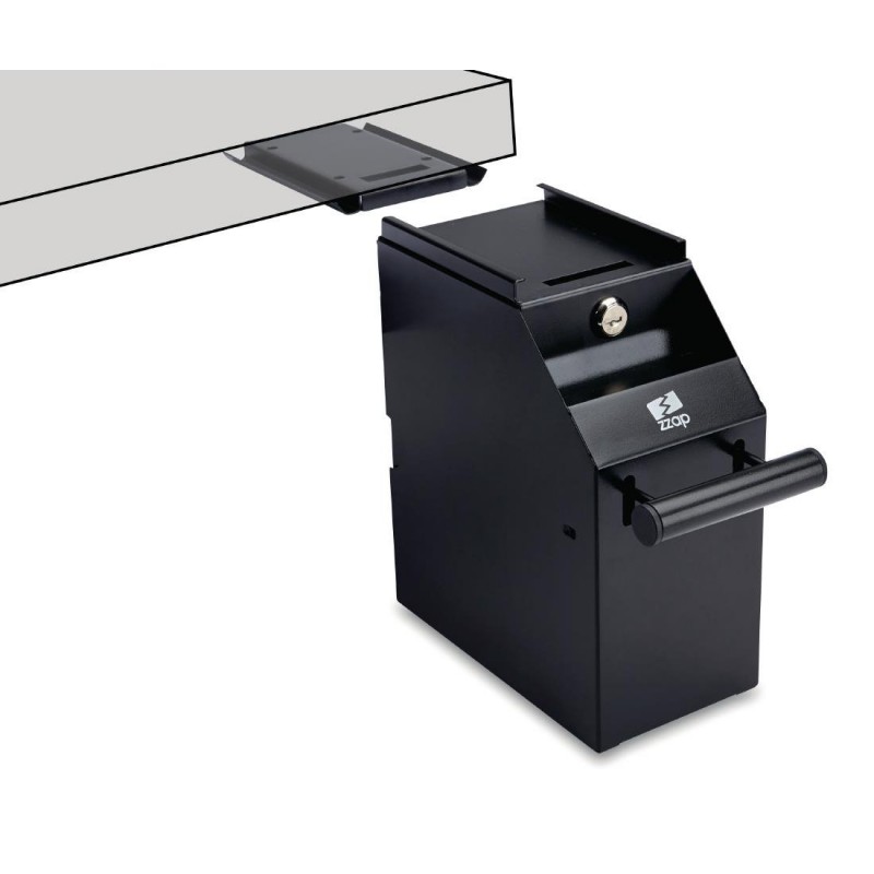 Keep up to 350 bank notes safe and secure with the S1 from ZZap. Simply attach the mounting plate under the counter and then slide the safe into position. The safe now covers all screws to prevent theft and is supplied with four keys (2 spares). 1 key is used to connect/release the safe from the countertop (for staff); the other is used to access to the banknote storage compartment (for management). Both locks are industrial-grade and until the safe is opened with the correct key the notes are protected by two layers of steel.