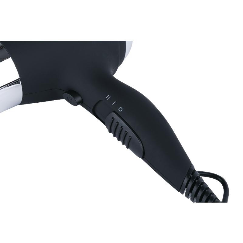 This twin-speed deluxe hairdryer is perfect for hotels guesthouses and Country clubs with an adjustable heat setting and safety switch. The hairdryer features a high quality 1.8m coiled extendable cable for manoeuvrability and a handy space-saving hang up hook. An essential product within the hospitality industry this sleek and stylish hairdryer is finished in black and chrome and takes just 20 seconds to heat up ready for use.