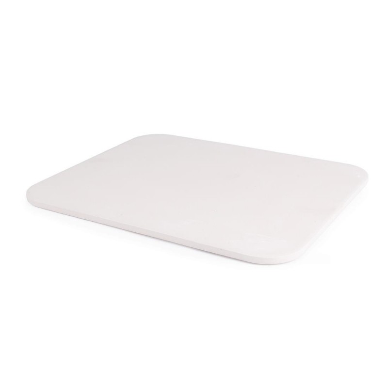 Perfect for restaurants and dinner parties alike these rectangular pizza stones will enable you to produce professional results. Constructed from moisture absorbing ceramic they will ensure you achieve a light and crispy crust every time. Encouraging even heat distribution the stones surface is not only great for cooking pizzas but it is also perfect for any dough based dish from bread and baguettes to biscuits and cookies. The pack comes supplied with a serving rack for presentation and pizza dough/sauce recipes.Place the stone in a cold oven and then turn the oven on to allow both the oven and the stone to heat up together for 20 to 40 minutes. Whilst the oven is heating up you can prepare your pizza. Remove the stone from the oven sprinkle with semolina and spread with a brush or spatula. Slide your pizza onto the stone and place back into the oven until cooked. When cooked leave your stone to cool and wipe with a clean damp brush without detergent.