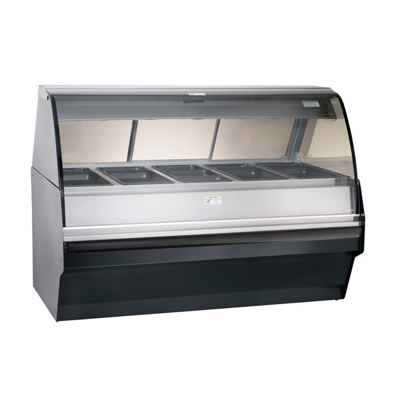 - Holds and displays hot food fresh and moist for hours — without adding water.