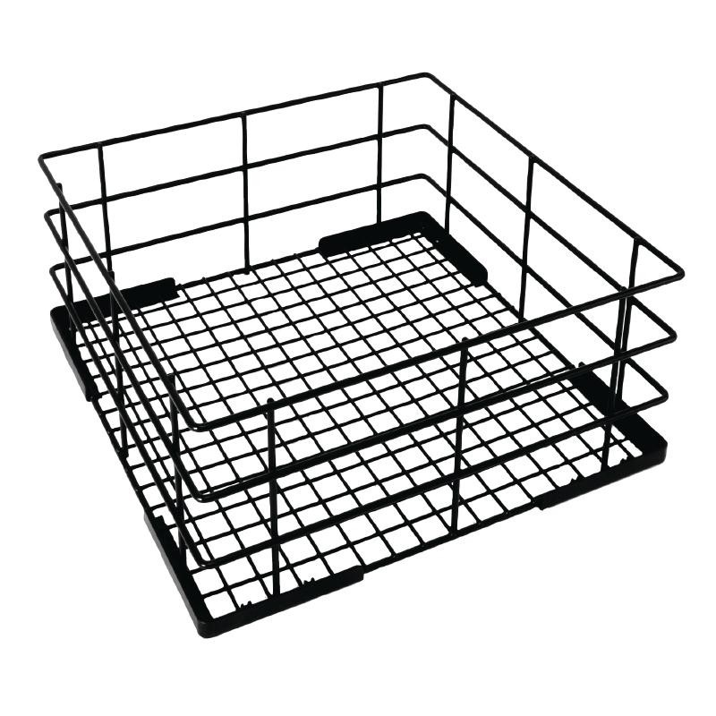 The Vogue Wire High Sided Glass Basket 500mm is suitable for glasses cups and other open containers allowing for mass cleaning of dishes in one go ideal for busy kitchens in restaurants cafes and bars. The PE coating makes the rack easy to clean and durable withstanding regular and vigorous use.