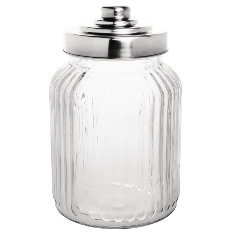 This vintage style ribbed glass storage jar adds a nostalgic feel to your kitchen or bar area. Perfect for displaying confectionary in a traditional style and the airtight seal means preserves will stay fresh for longer. The stainless steel lid is durable and screws on to seal the jar closed.