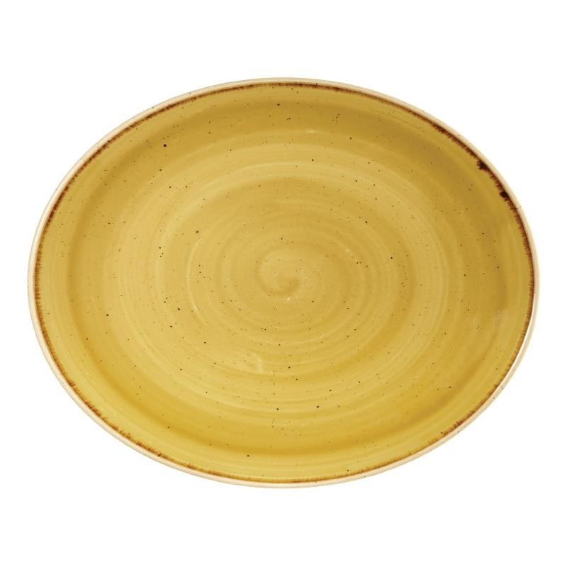 Churchill Stonecast Oval Coupe Plate Mustard Seed Yellow 192mm (Pack of 12)