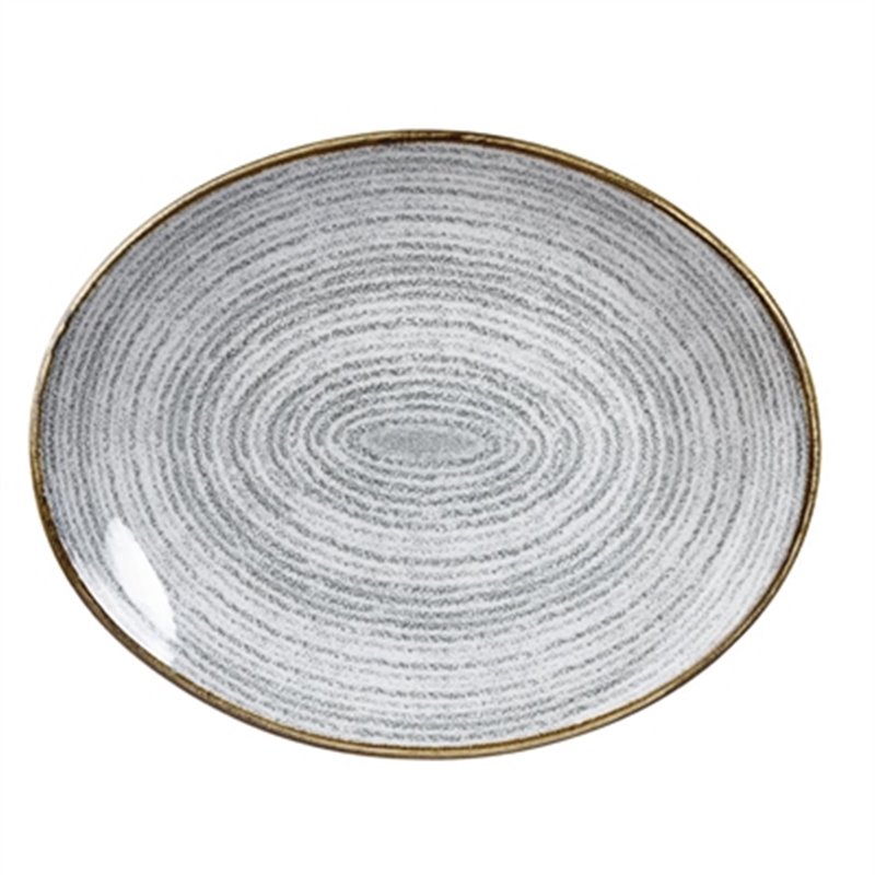 Serve small sharing dishes or a main meal on this oval plate from Churchill's Vintage Prints collection. The Soft Stone grey colour creates the perfect backdrop for vibrantly coloured homemade foods and will complement any restaurant that wants to add a vintage touch to their table setting. The band that surrounds the rim is painted by hand so that each plate has its own slightly unique finish.