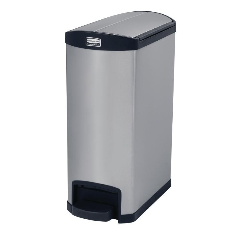 Rubbermaid Slim Jim End Step on Pedal Bin Stainless Steel 50Ltr