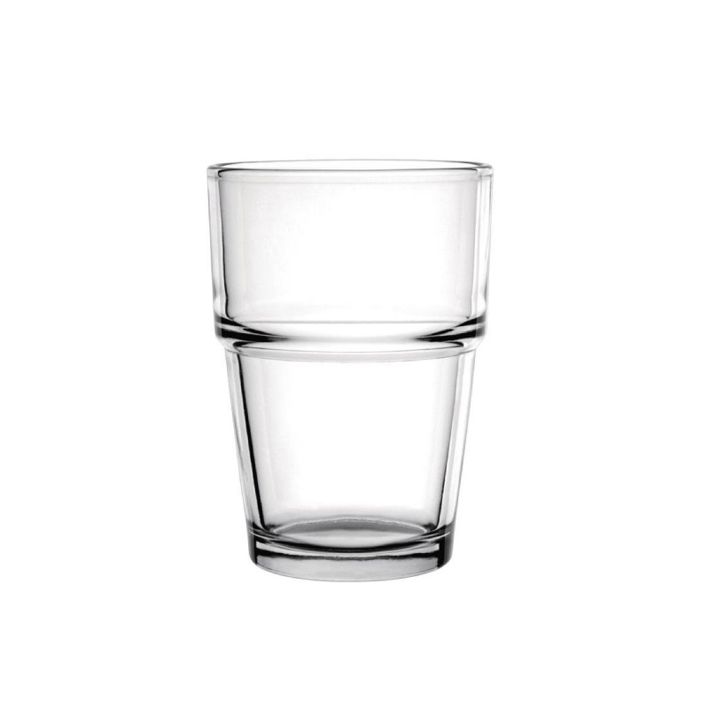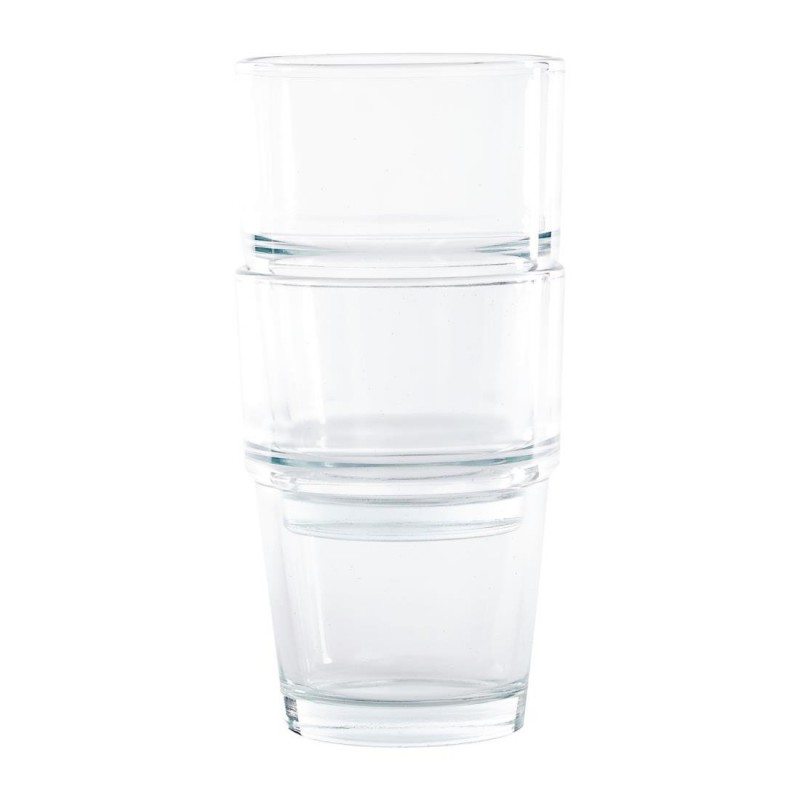 This 200ml stackable glass from Olympia is fully toughened to withstand use in even the most demanding of environments. The uncomplicated design allows these glasses to take up very little space whilst in storage while the tough rim will resist chipping and save you money on re-stocking costs.
