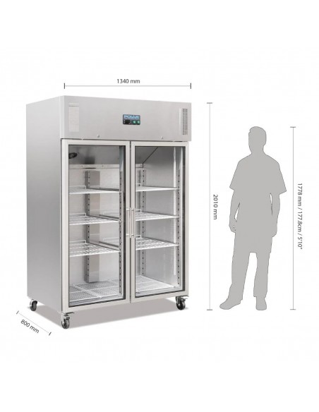 Polar Upright Double Glass Door Gastro Refrigerator 1200Ltr