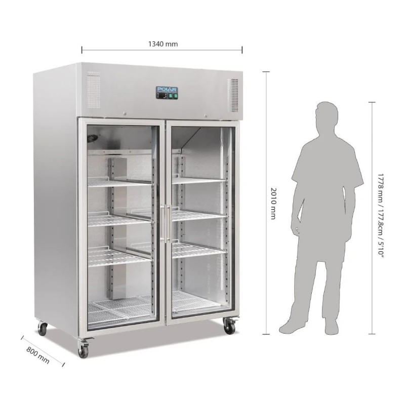 Polar CW198 Upright Double Glass Door Gastro Refrigerator 1200Ltr - FREE 24hr Delivery & Unpack