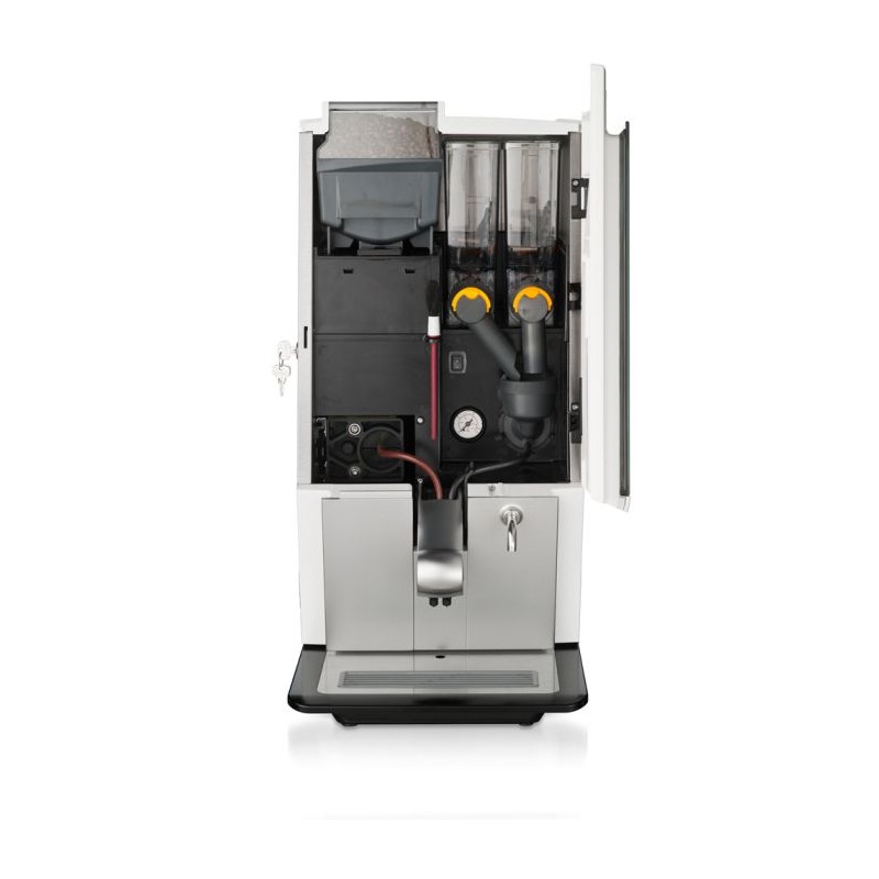 Esprecious 12 has one canister for coffee beans and two canisters for instant ingredients. The two canisters for instant ingredients can be filled with topping and cacao for coffee specialities such as cappuccino, latte, moccachino and hot chocolate.
