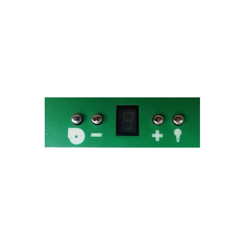 - Control panel with on/off switch, light switch, push button speed controller with 5 speed settings