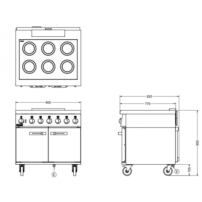 - Large 6kW, 6 x GN1/1 capacity twin fan assisted oven enables six different trays to be cooked simultaneously