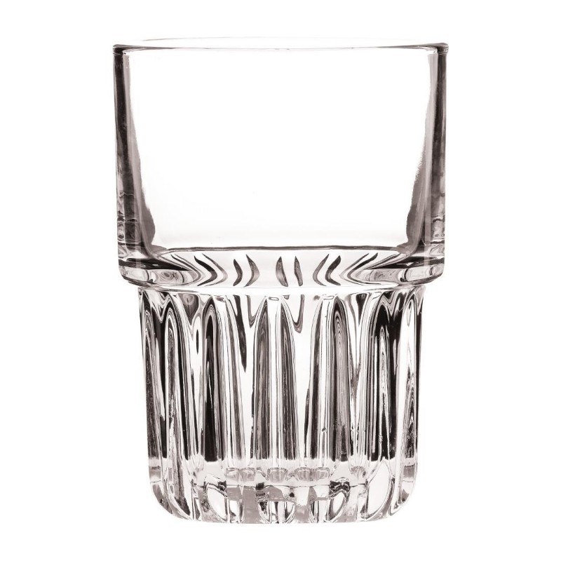 Combine strength, stackability and style to make the perfect tumbler for fast traffic, high use outlets, with these Everest duratuff beverage tumbler glasses from Libbey.