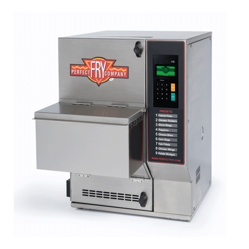 - Ventless fully automatic countertop deep fat fryer with fire suppression that can cook up to 1.3kg per cycle