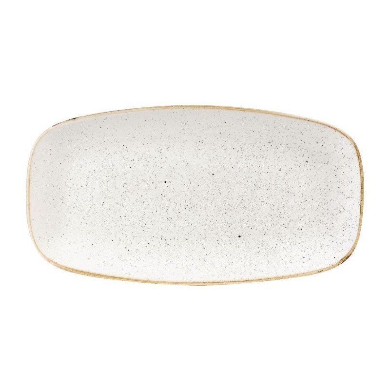 Serve in style with these stunning 189(W) x 355(L)mm Churchill Stonecast barley white rectangular plates. Made in a sleek barley white colourwash, these large rectangular plates ooze elegance and sophistication, adding a truly luxurious touch to the presentation of your main courses. Produced with a hand-decorated golden rim and flecked finish, no two plates look the same, giving each piece unique charm and character that will delight your guests. Completed with a fully glazed foot, this crockery is also safe for stacking, enabling more space-efficient storage in your kitchen.